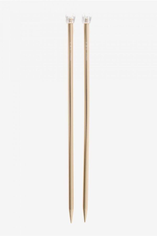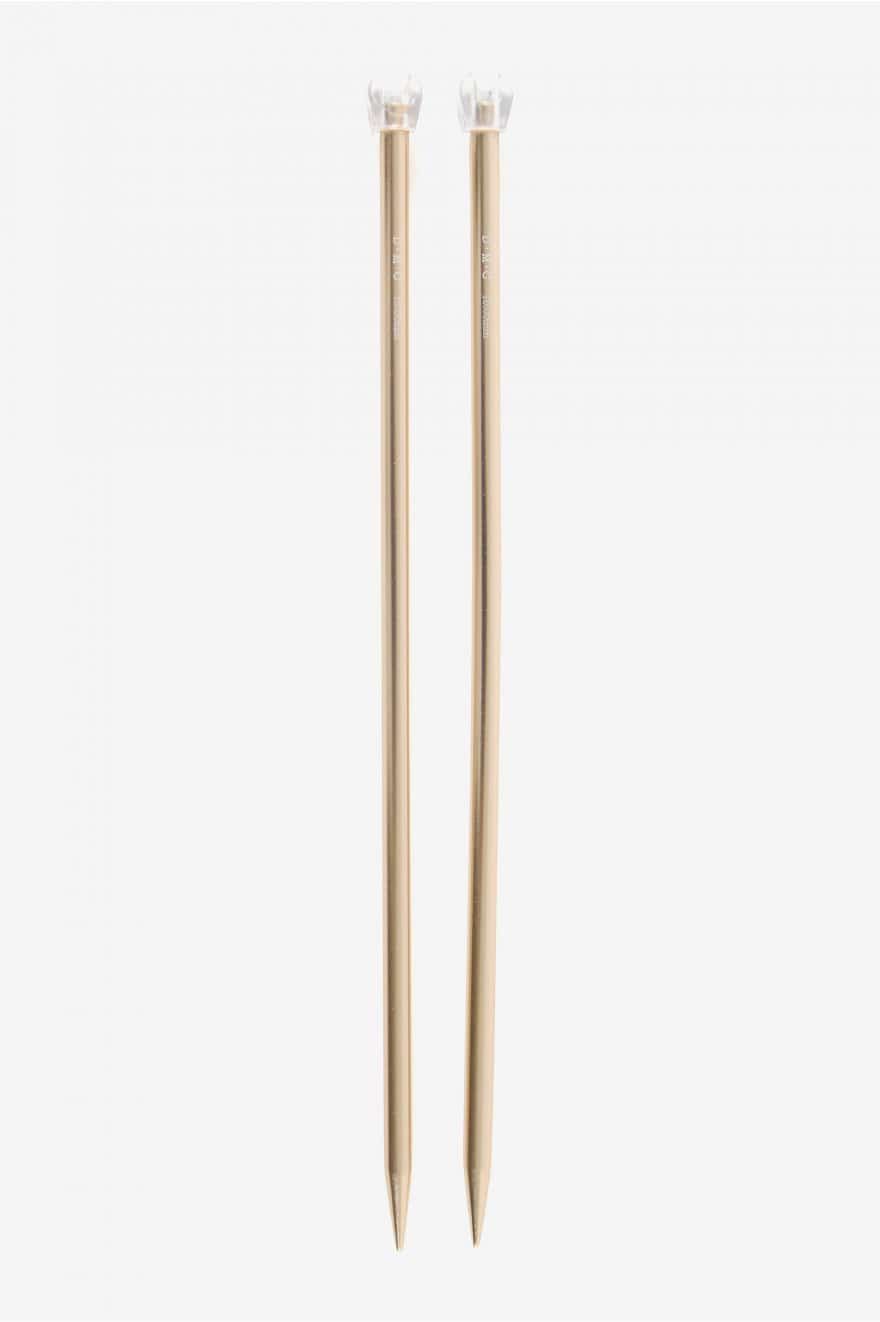 Estas agujas de aluminio anodizado son de talla 10 y tienen una longitud de 40 cm. Este accesorio para el tejido en color dorado rosado tiene un look muy femenino y elegante.