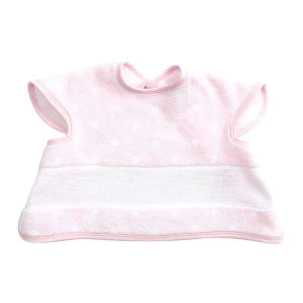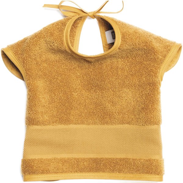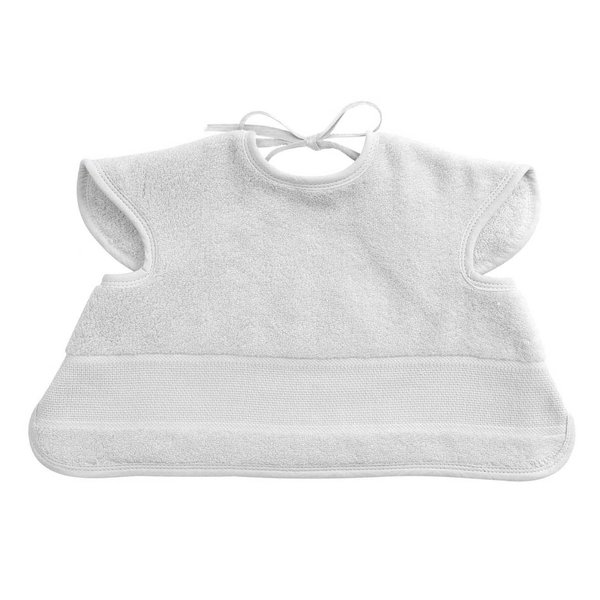 Este babero de corte clásico está elaborado en tela acolchada azul y cuenta con un recuadro de cuadrillé del 14 para que lo pueda personalizar y con un acabado de bies azul. Este artículo está ahulado por lo que se sugiere no planchar.