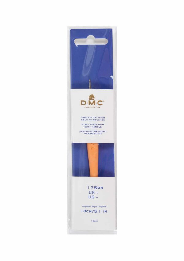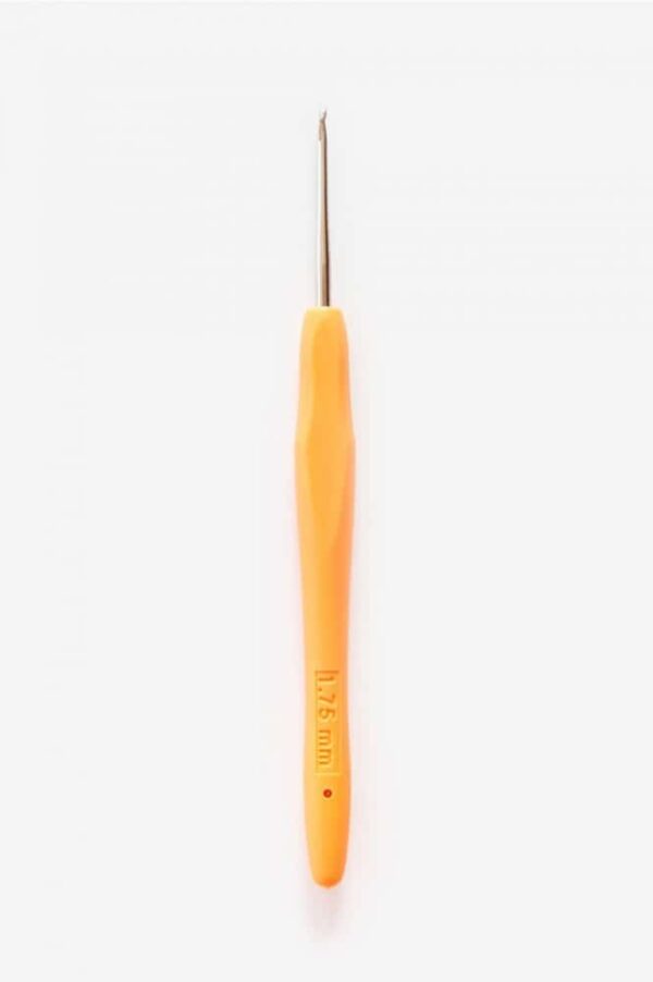 Ganchillo de aluminio de 1.75 mm con mango de silicona ergonómico para su buen manejo y agarre. Este accesorio para el crochet es agradable al tacto, muy ligero y es indicado tanto para principiantes como para expertos.