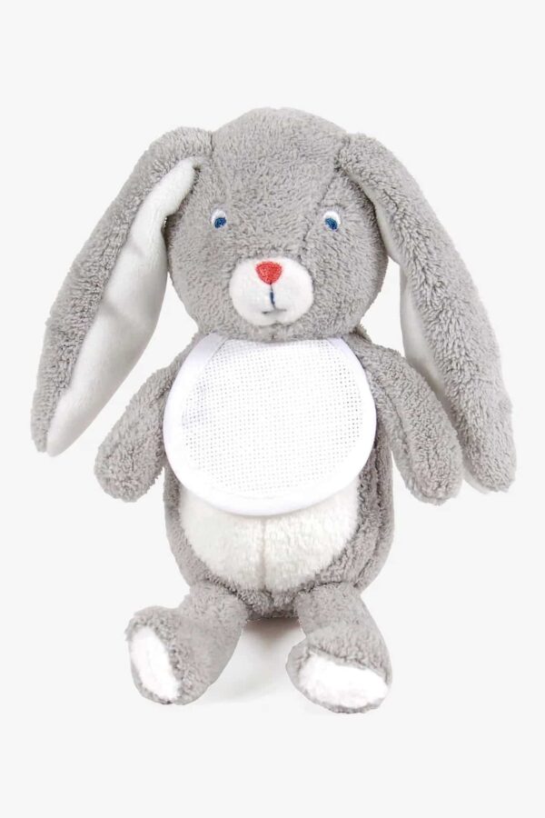 A los niños les encantará este conejito de peluche. Un maravilloso regalo para bebés que se convertirá en el compañero favorito de los más pequeños. Utiliza el patrón incluido para personalizar la tela Aïda 7 pts/cm de su babero con un pequeño diseño en punto de cruz, el nombre de un adorable pequeñín o una fecha de nacimiento.