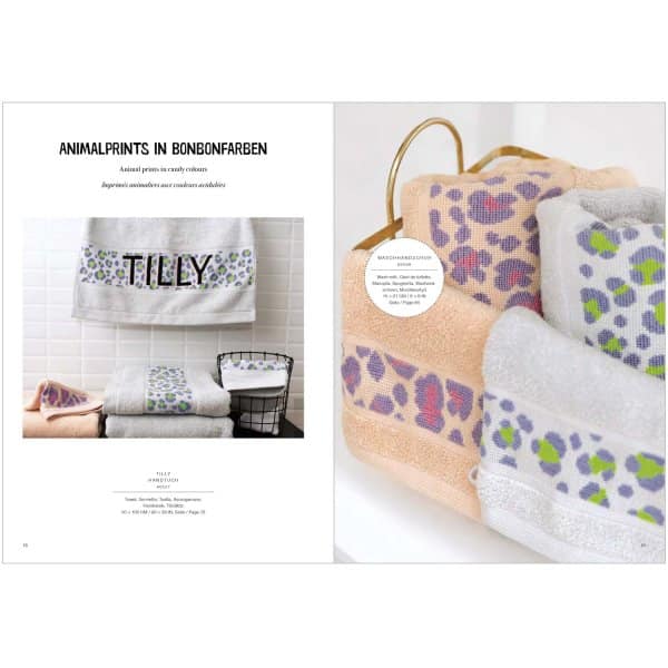 Atrévete a una decoración contemporánea con este libro de bordado en punto de cruz en donde encontrarás 50 diseños modernos con la temática de Animal Print en colores muy divertidos. Los patrones se complementan con monogramas simples y rayas de bloque para trabajarse en diferentes toallas para la decoración de tu baño.