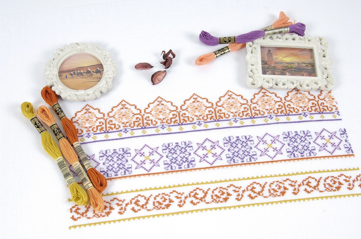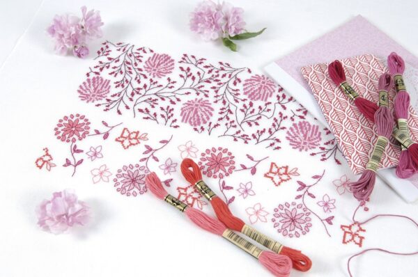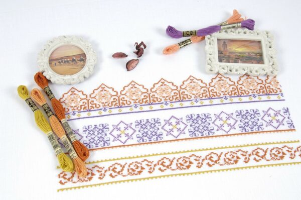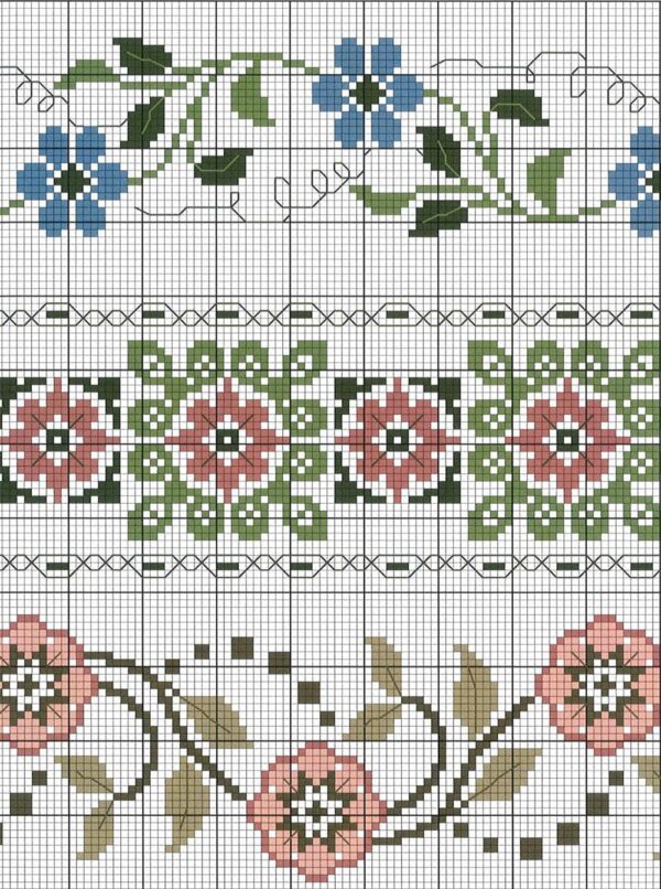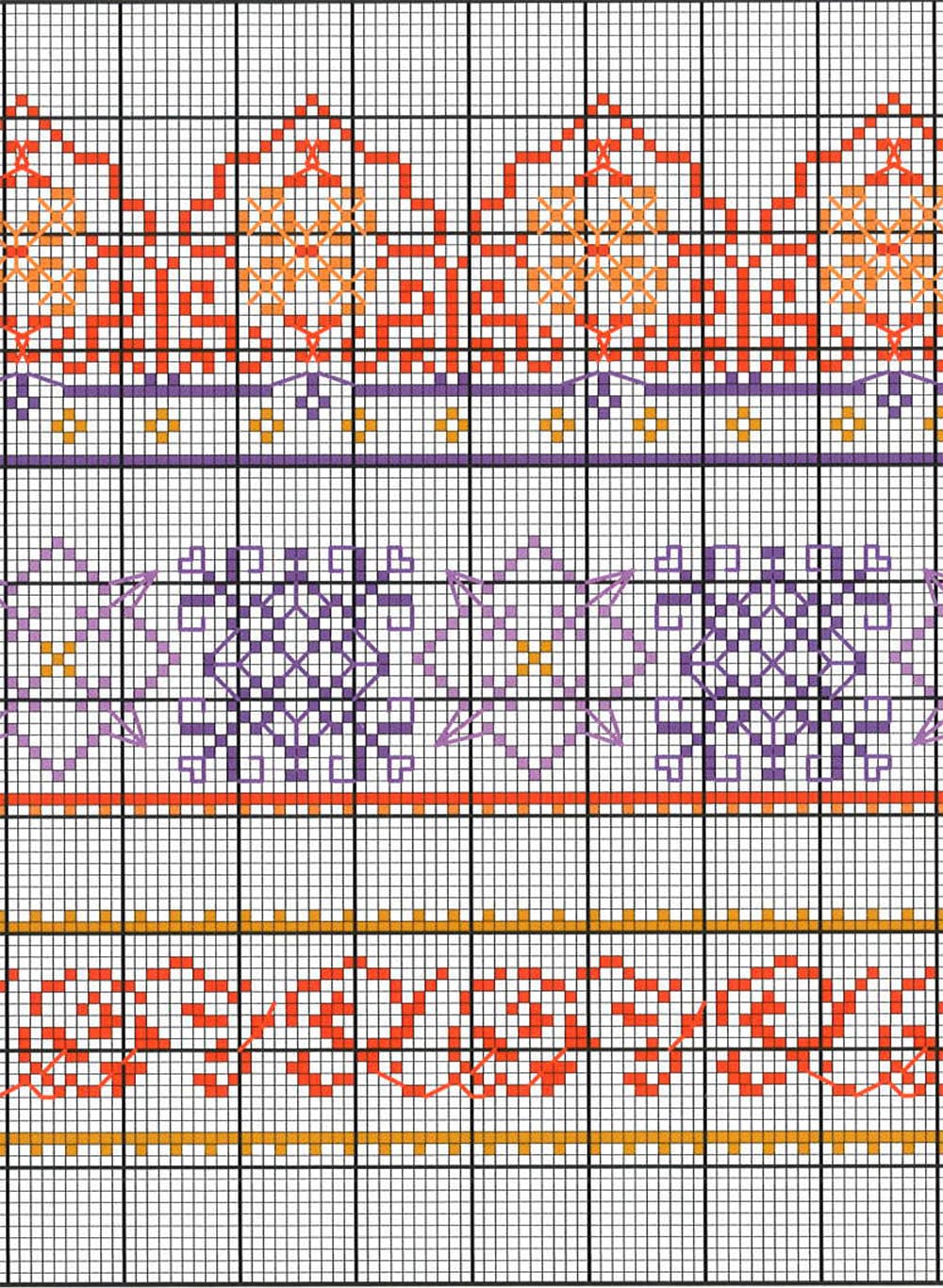 Revista con hermosas inspiraciones para bordarse en cenefas de cojines, manteles, servilletas, toallas y más accesorios para decorar tu hogar. Originales diagramas en punto de cruz con diseños de grecas y flores.