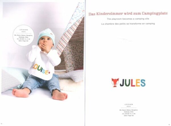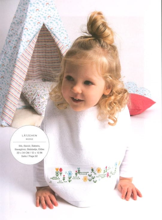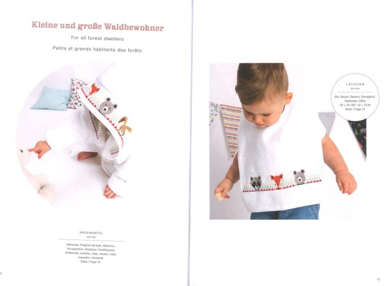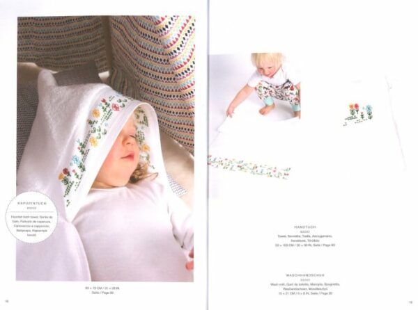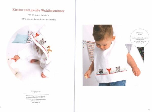 Libro No. 159 "Woodland Camping" contiene muchas ideas maravillosas de bordado con lindos motivos relacionados con el segmento de la madera y el campamento. Lindos conejos, zorros y ciervos, coloridos tipis, canoas y tiendas de campaña, árboles verdes y coloridas flores silvestres, que se muestran en baberos, toallitas, toallas, batas de baño, toallas de baño con capucha y más para bebés y niños pequeños. Los productos básicos se presentan en los colores favoritos blanco y ultramar, así como en nuestro nuevo color menta pastel.